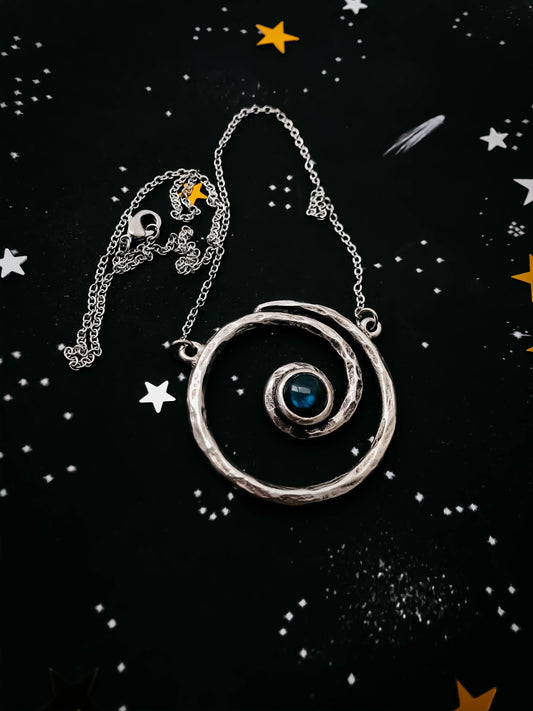 Zen Circle Necklace with Genuine Labradorite