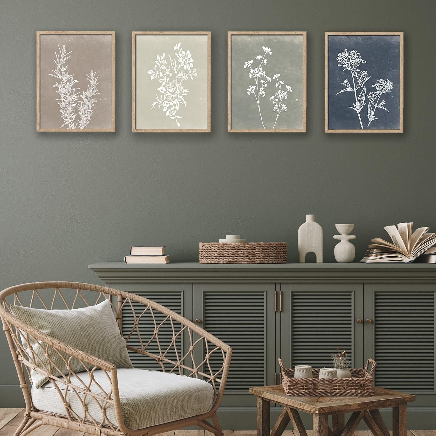 - Set of 4 Farmhouse Boho Wall Art: Includes four uniquely framed botanical prints perfect for enhancing your home wall decor.