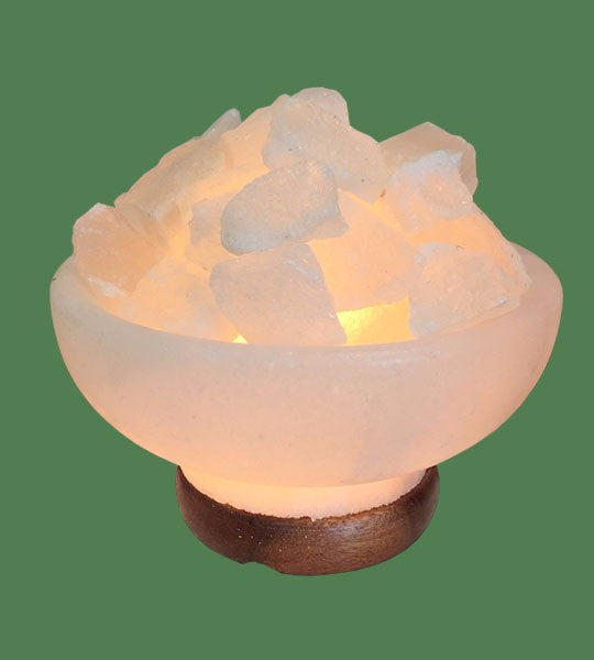 You will love the alluring soft glow of this beautiful White Himalayan Salt Fire Bowl. This White Himalayan Salt Firebowl contains pure and organic Himalayan Salt Chunks that are hand-carved and unique in their shapes. When heated, Himalayan salt emits negative ions. The naturally ionized air creates a soothing and calming affect which helps you sleep better at night.